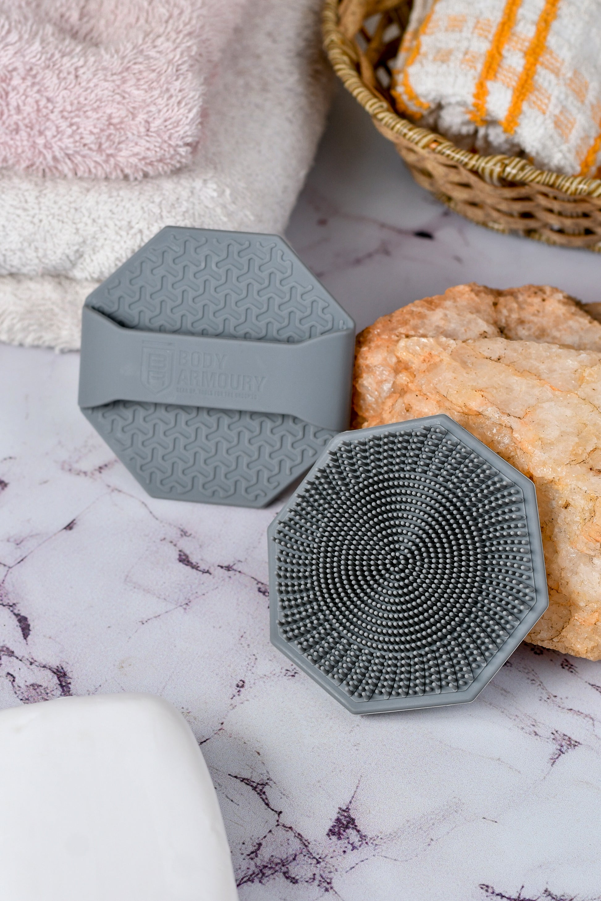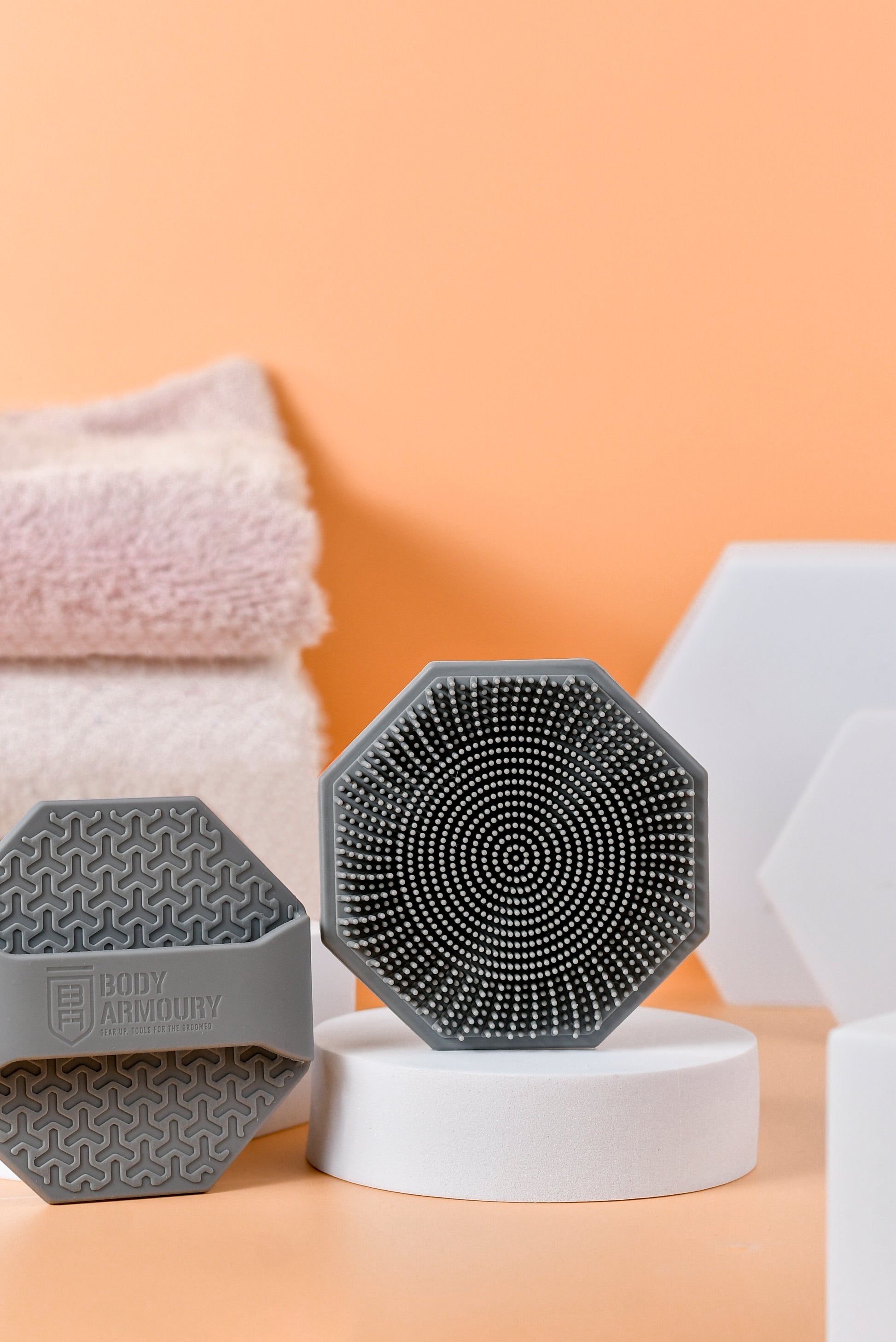 Made from 100% medical-grade silicone, it’s naturally anti-bacterial, fast-drying, and built to outlast loofahs and sponges. The compact grip design fits perfectly in your hand, while its dual-texture bristles gently exfoliate, unclog pores, and smooth your skin.
